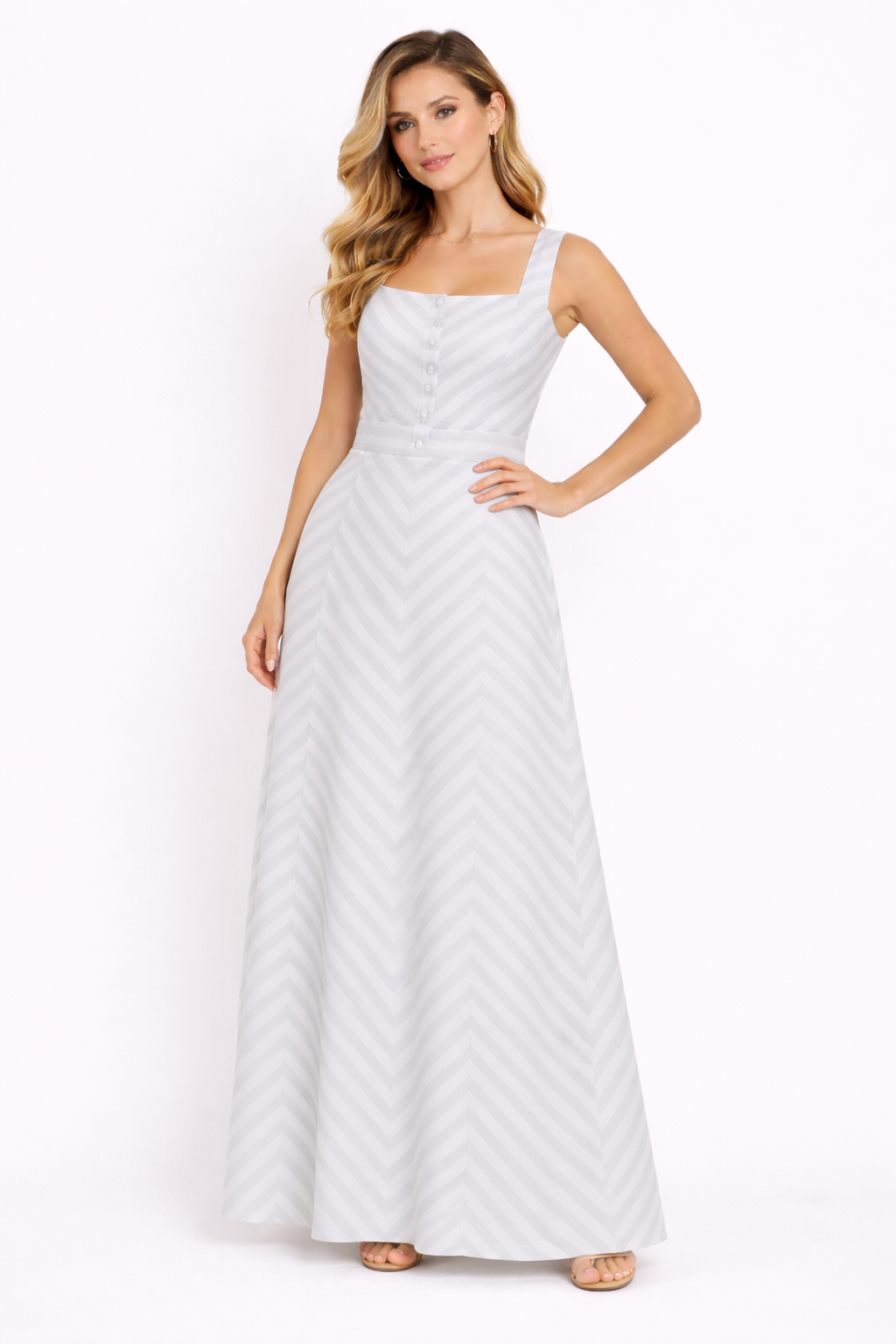 فستان رمادي فاتح بخطوط بيضاء (مارسينو)