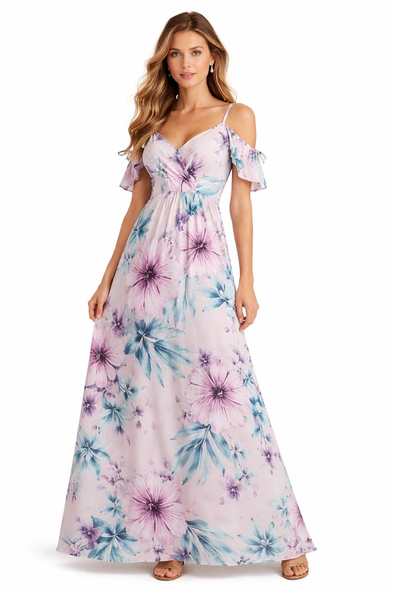 فستان زهري فاتح بزهور تركواز (مارسينو)
