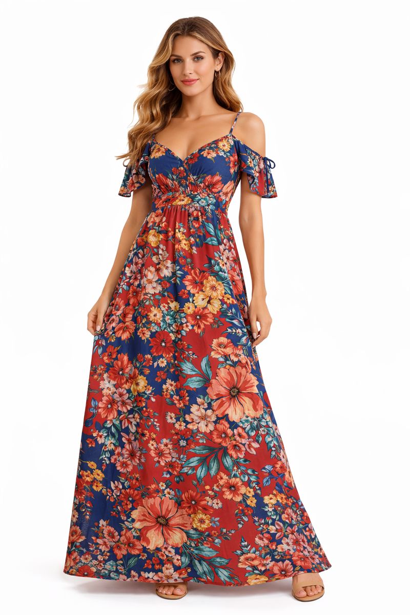 فستان أحمر مزهر ستايل صيفي (مارسينو)