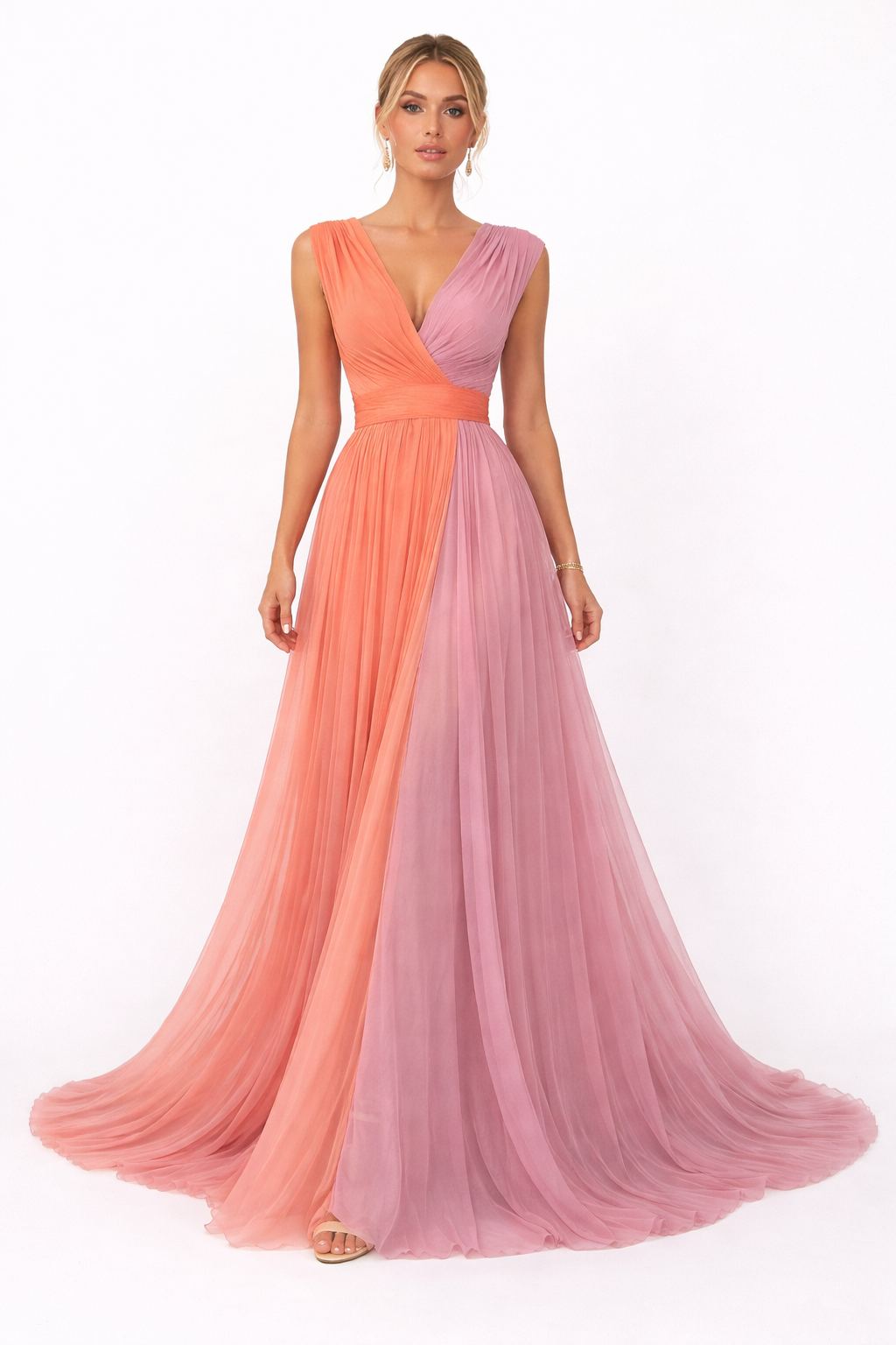 marciano فستان بليسيه شيفون وردي ومشمشي