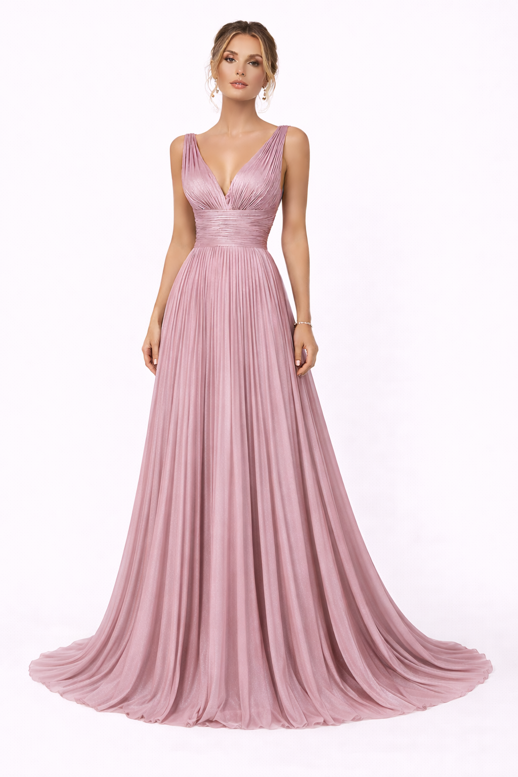 فستان وردي ميتاليك بفتحة صدر (مارسينو)