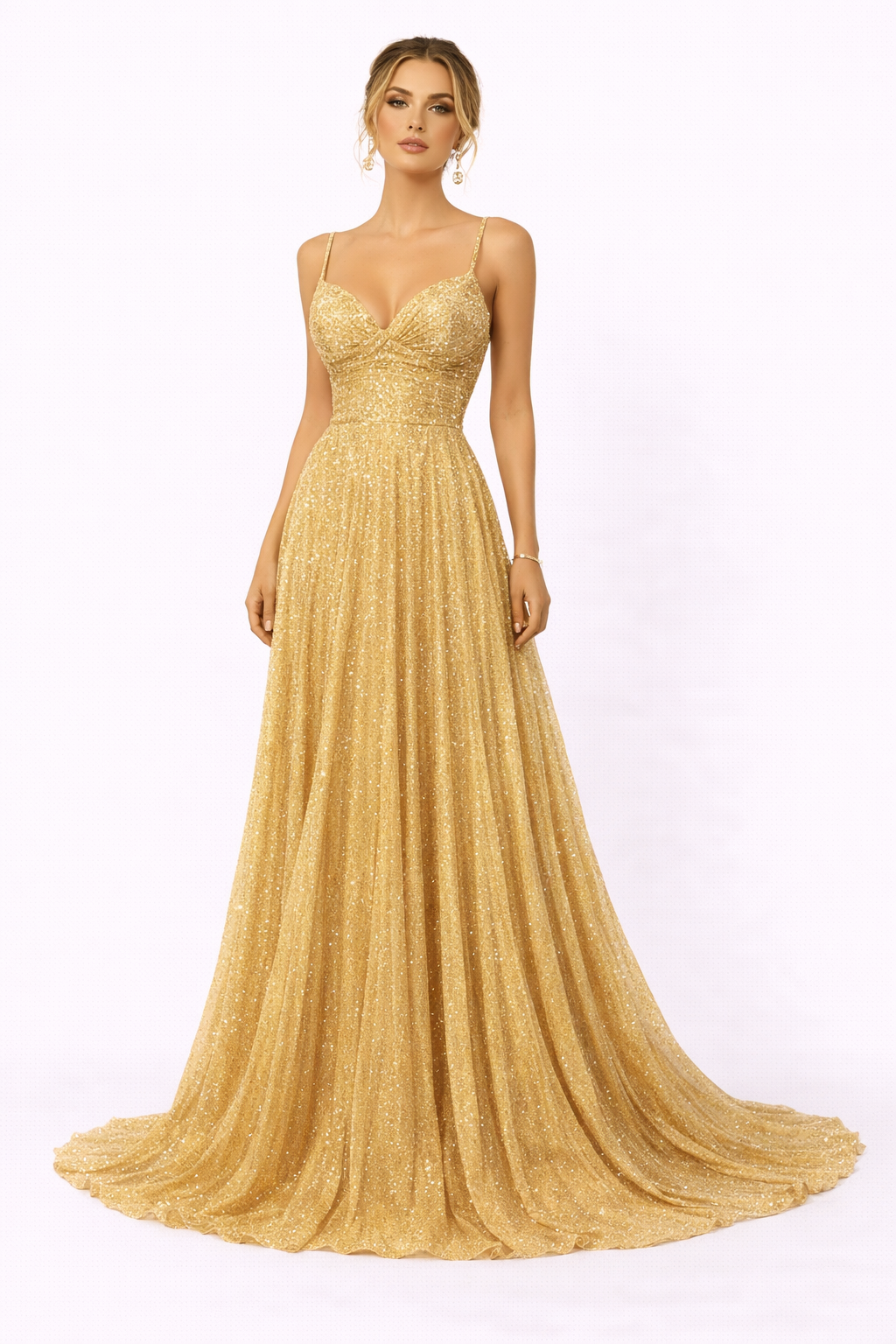 فستان ذهبي طويل لامع أنيق (مارسينو)