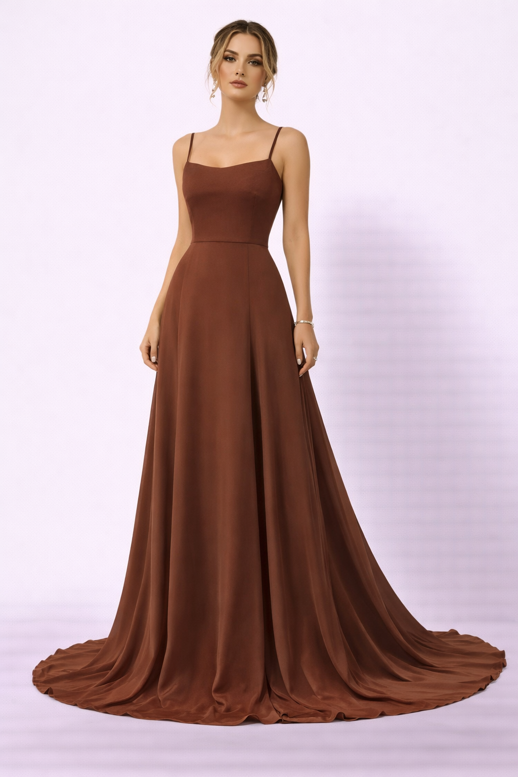 فستان مارسينو فستان بني ناعم بحمالات رفيعة.