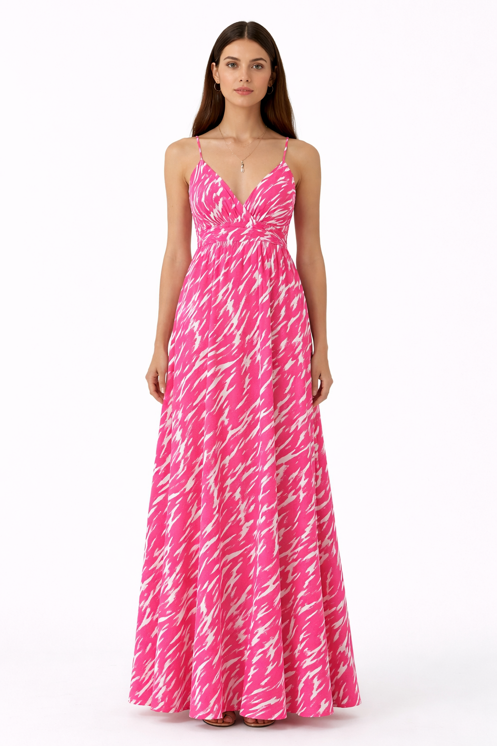 فستان مارسينو فستان وردي منقوش بحمالات رفيعة