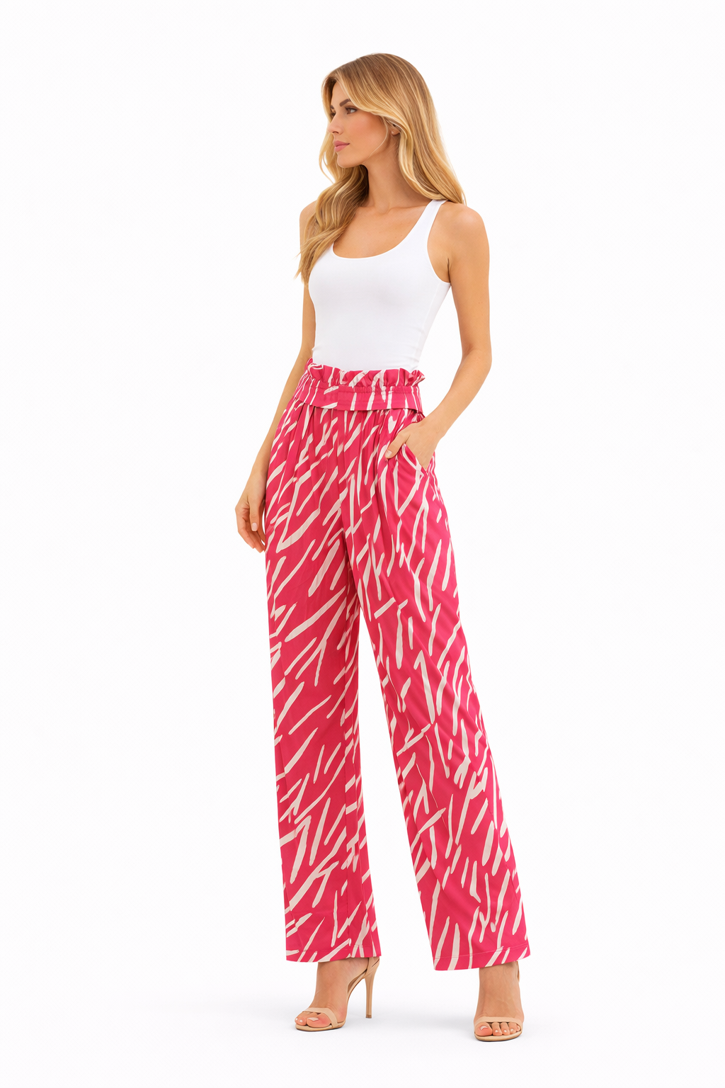 (هانيتا)بنطلون فوشيا مشجر بخصر مرتفع