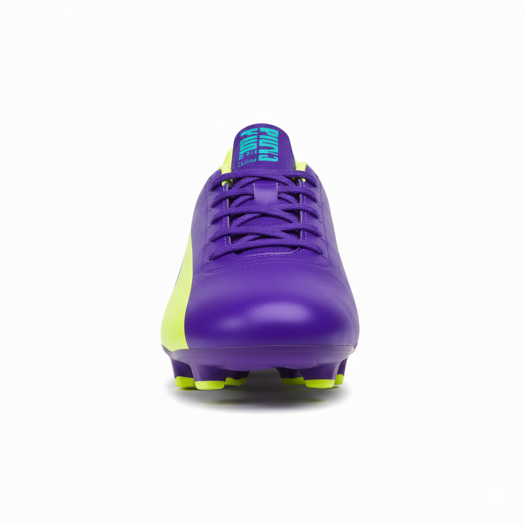 يُعد هذا الحذاء من Puma الخيار الأمثل للاعبين الذين يبحثون عن مزيج بين التصميم العصري الجريء والأداء الرياضي العالي. يتميز الحذاء بلون أرجواني ملكي جذاب يغطي الهيكل الخارجي المصنوع من مواد اصطناعية خفيفة الوزن ومتينة، مما يوفر تحكماً فائقاً في الكرة وثباتاً أثناء الحركة السريعة.