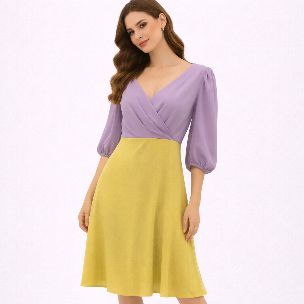 (فستان حريمي بنفسجي قي اصفر مركة (هينيتا