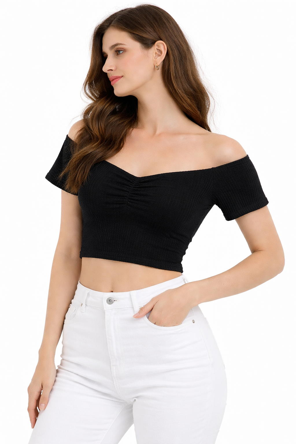 بلوزة سوداء قصيرة بياقة واسعة (هانيتا)