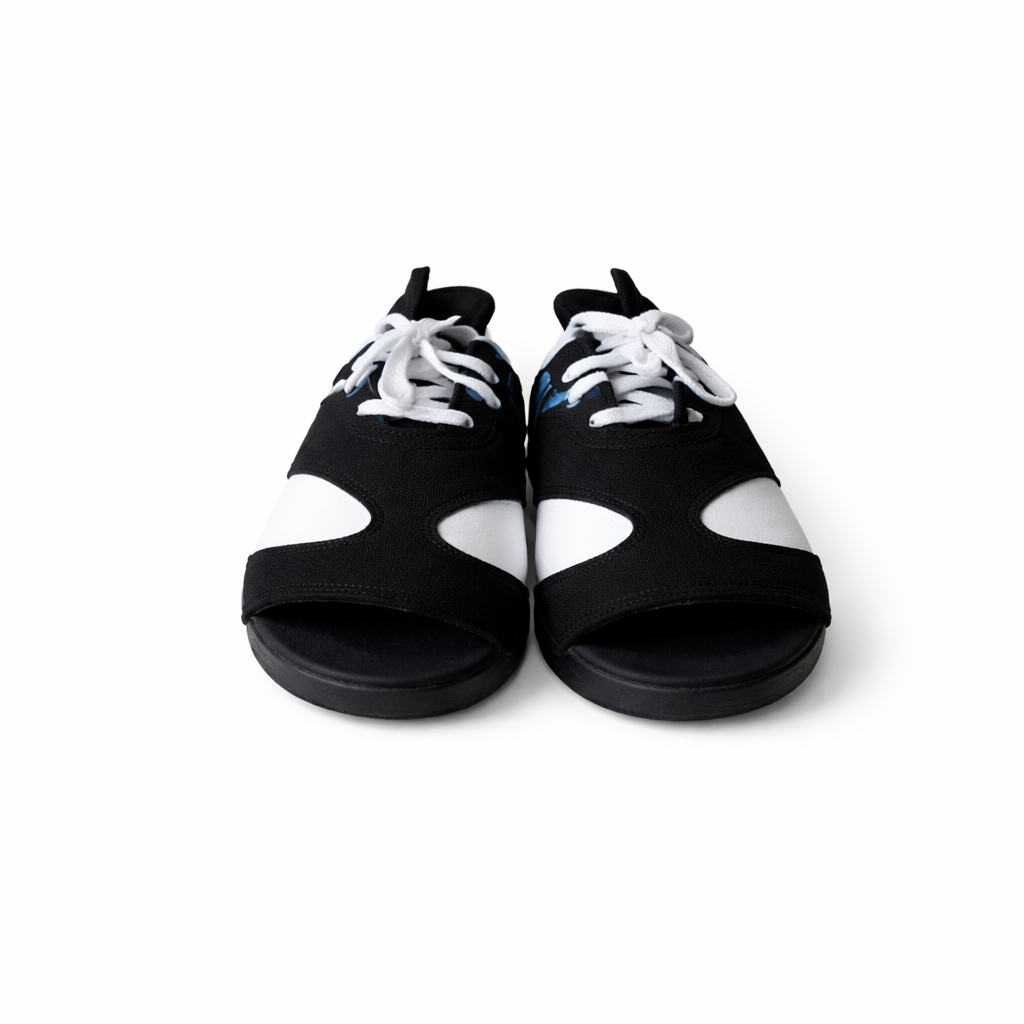 صندل أسود مريح بنعل سميك وأحزمة متينة