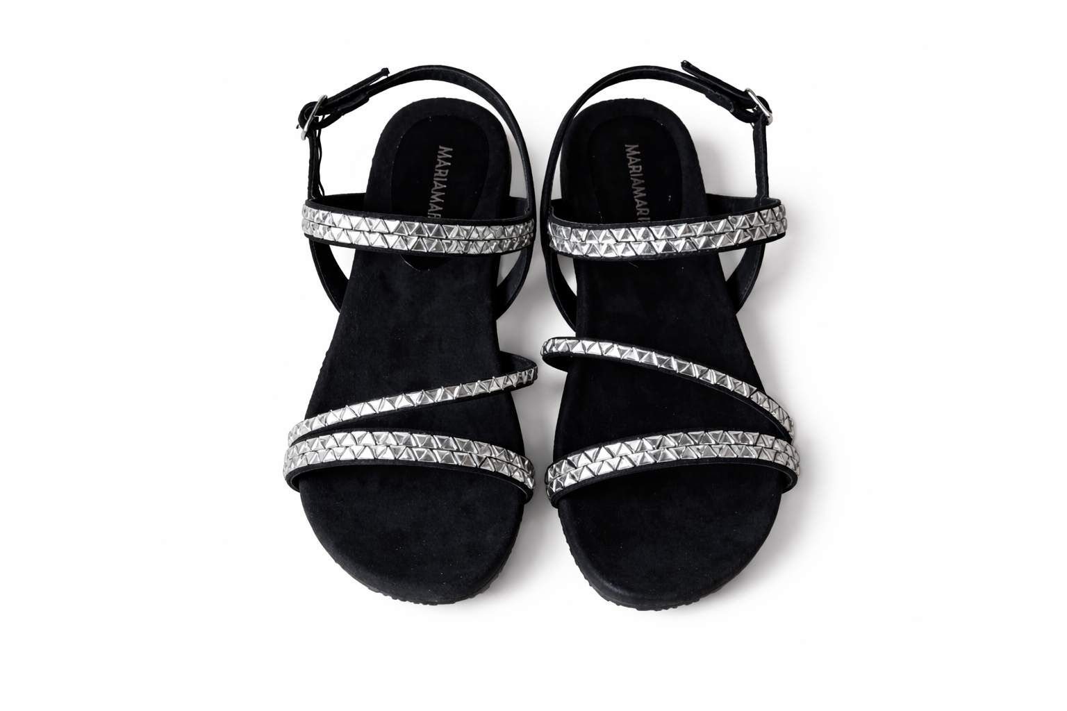 Mariamare براند أحذية نسائي عصرية بتصميمات أنيقة وجودة عالية، أصلي 100% ومصنوع في إسبانيا ليجمع بين الموضة والراحة في كل خطوة. صندل أسود عصري بنعل "بلاتفورم" مريح، يتميز بسيور رفيعة مرصعة بفصوص فضية براقة تضفي لمسة من الحيوية والأناقة على إطلالتك اليومية.