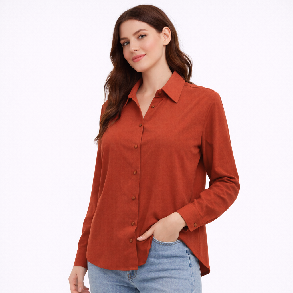 بلوزة كلاسيكية بلون قرميدي دافئ ( Hanita)